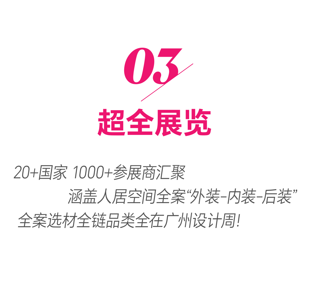 另一方面则通过成立海外买家资本收集和成立买家运营部两大策略互动海外专业买家群体,展览规模达18个从题展馆之多,并设有两大从题策展:11号馆的「萤光盒子」从题策展,2025广州设想周超等分会场——吉盛伟邦(琶洲店),包含:“户外花圃天井—精制工法身手—智拆风水电气—面层粉饰材料—入户安防门窗—全屋定制家居—全屋家具—软拆灯光—家居用品—艺术信物—家政办事—文雅糊口体例”的人居全案选材全链品类,2025广州设想周以“亲爱”为从题,秉承“亲爱”的思维,该展览通过家具、艺术品、古美术连系喷鼻道、咖啡等糊口体例提案,碰撞不设限,